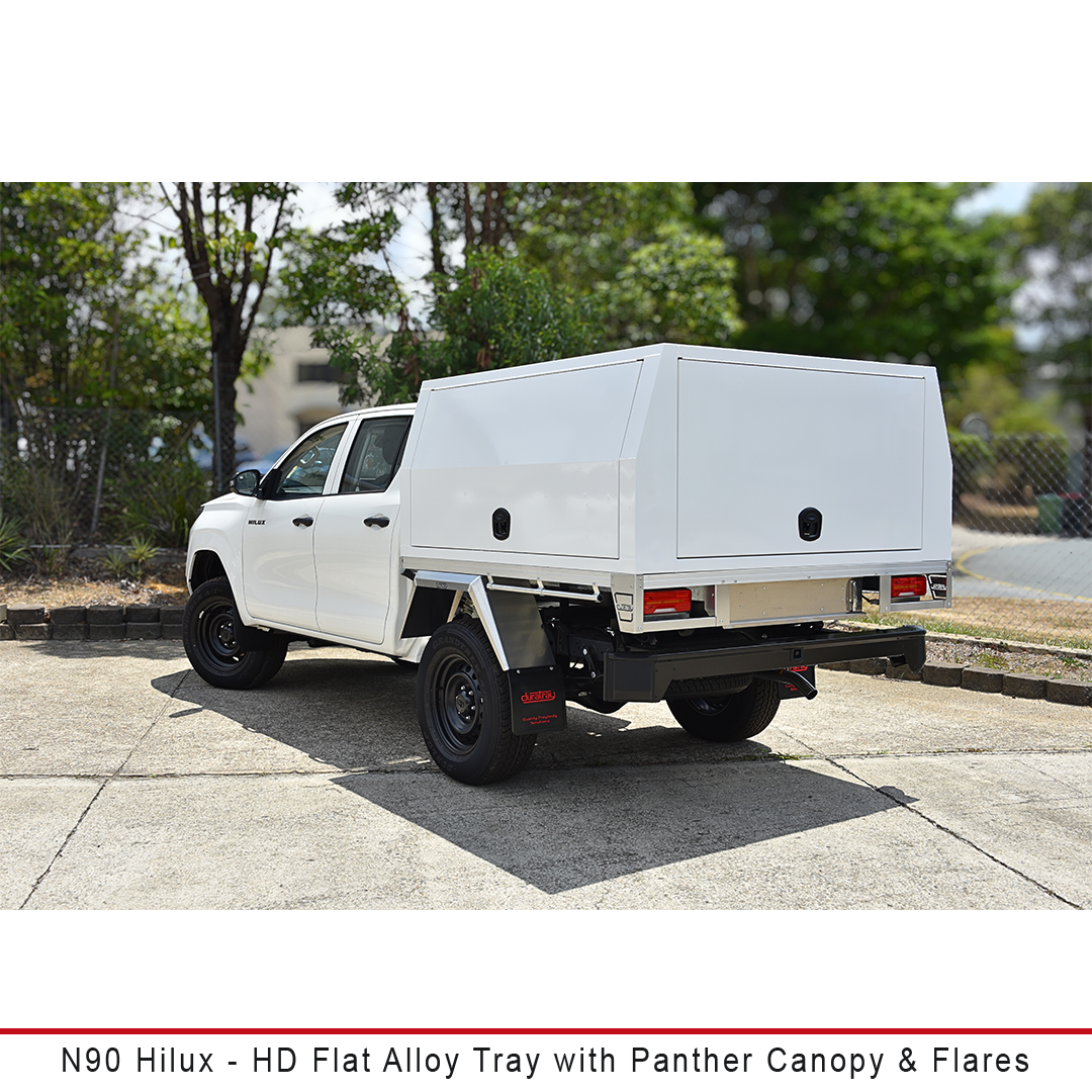 The Super Duty compatible Deluxe Aluminium Tray combines premium features with a heavy-duty product for those that require a great looking tray that is ready for hard work. Standard features include 76mm tubular headboard, laser-cut steel window protection, one-piece flared mudguards & tail light...