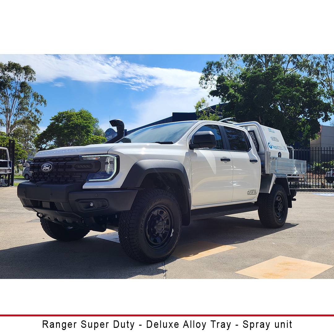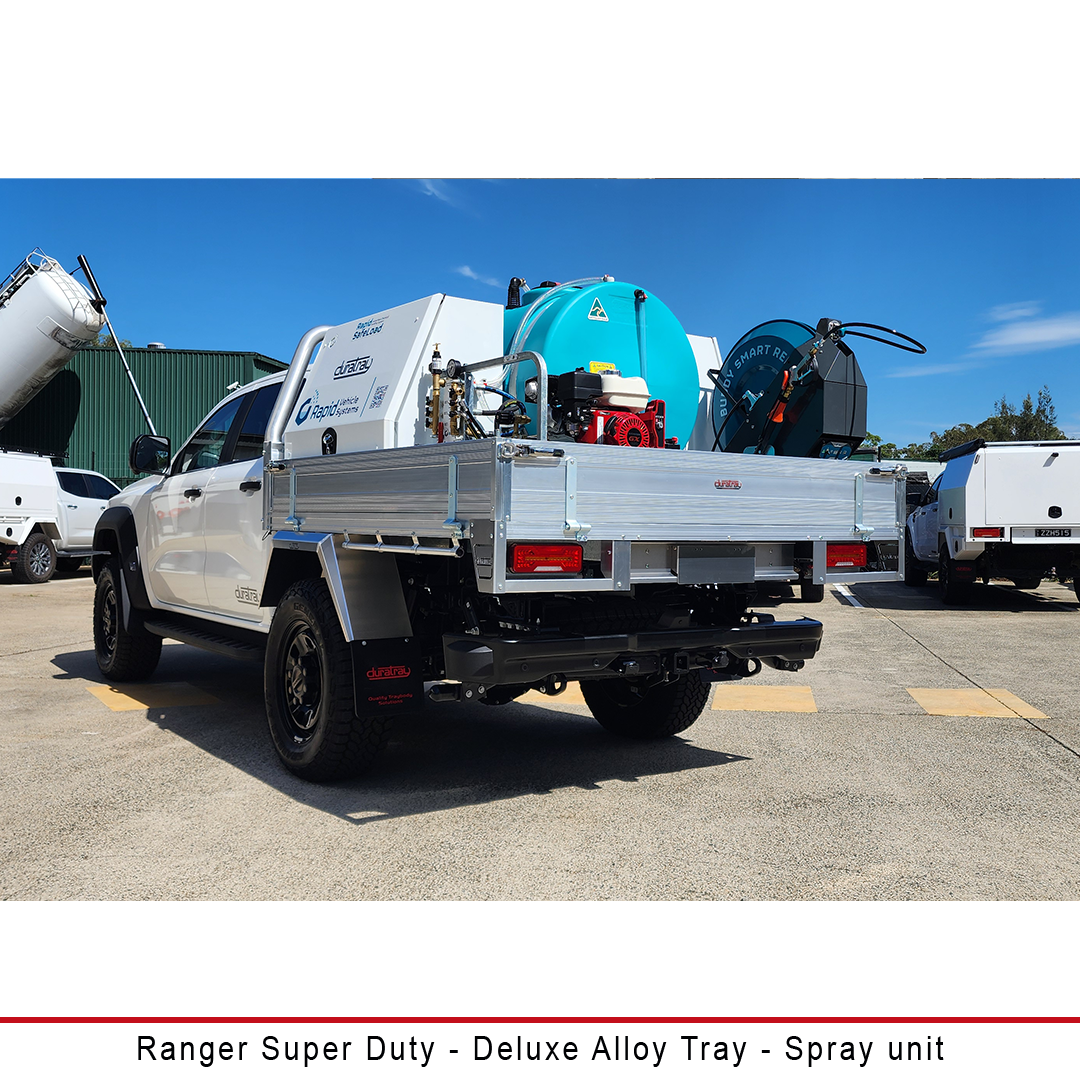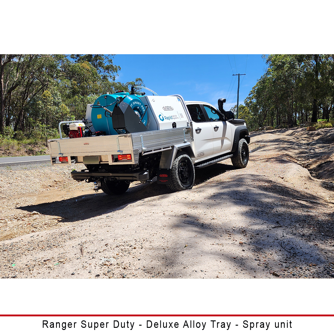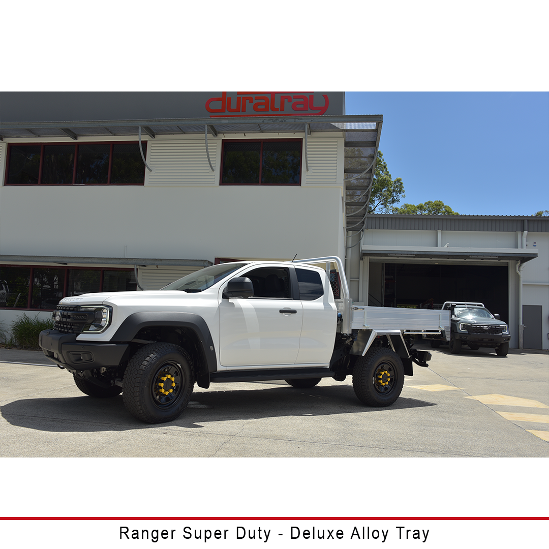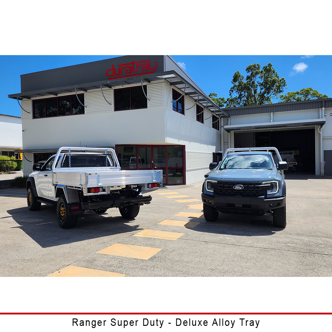 The Super Duty compatible Deluxe Aluminium Tray combines premium features with a heavy-duty product for those that require a great looking tray that is ready for hard work. Standard features include 76mm tubular headboard, laser-cut steel window protection, one-piece flared mudguards & tail light...