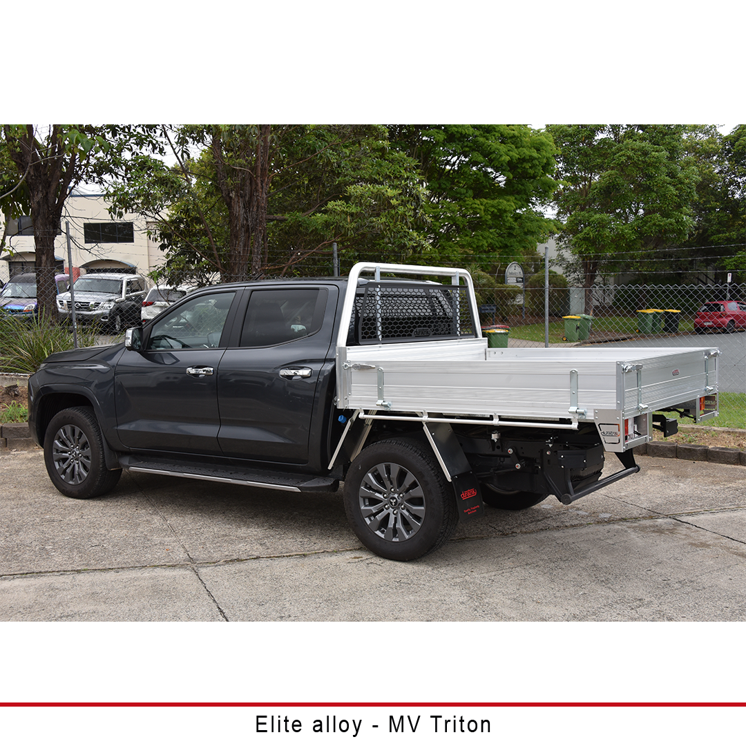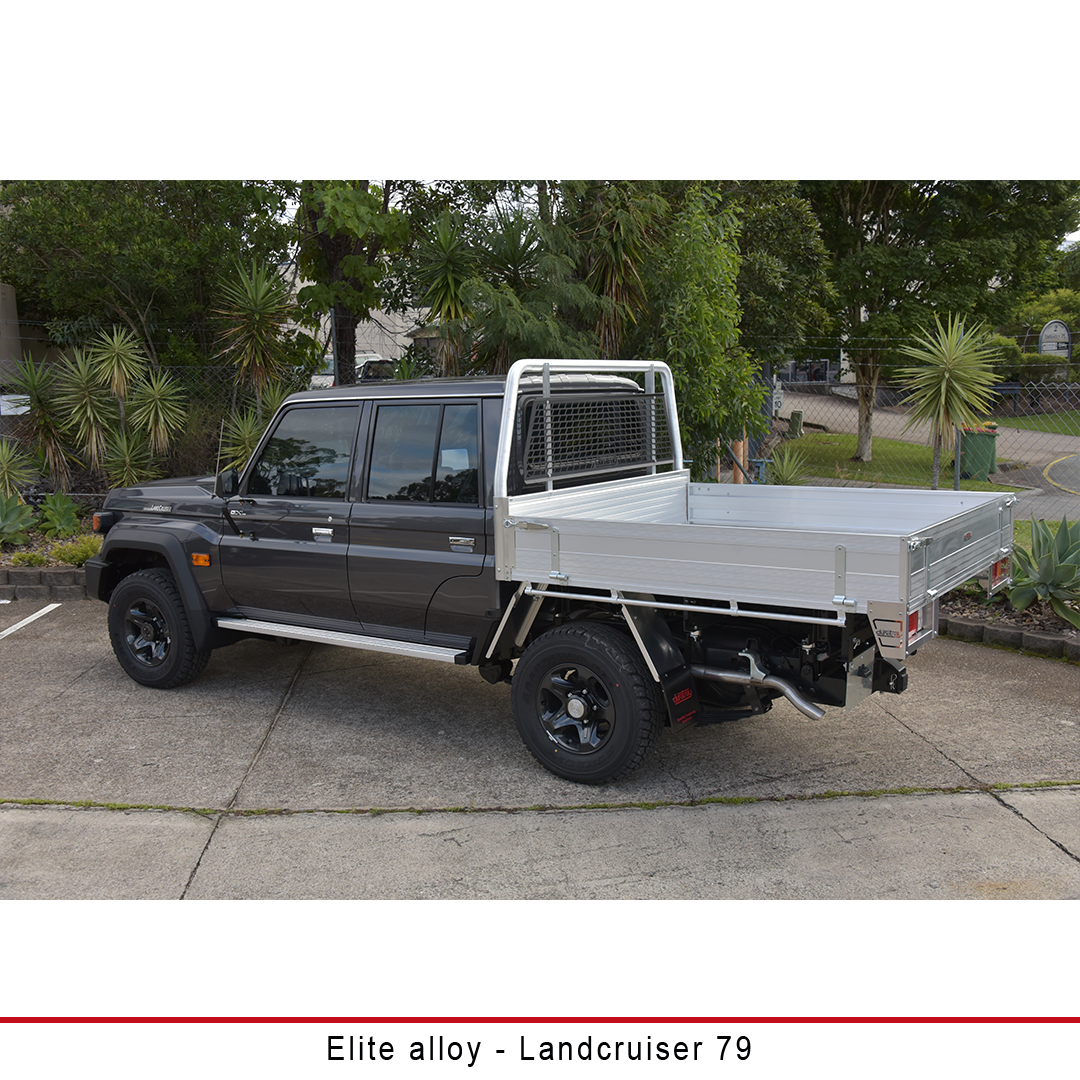 A Heavy Duty stylish steel tray designed to be eye catching and able to withstand the harsh Australian conditions. Features Heavy duty fully welded steel construction Recessed tail light panel with LED lights Heavy duty 76mm headboard with tube cross rails or mesh window...