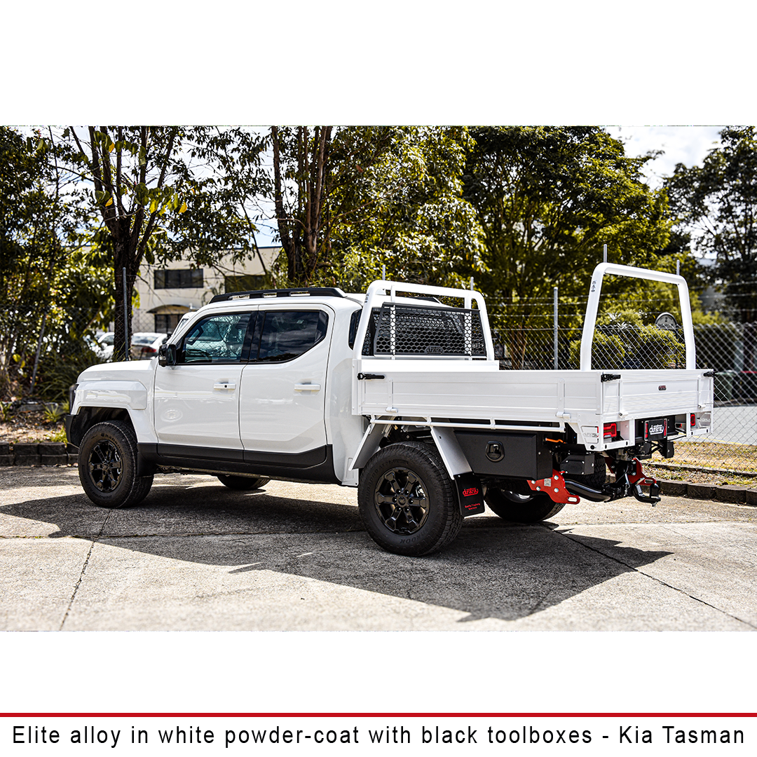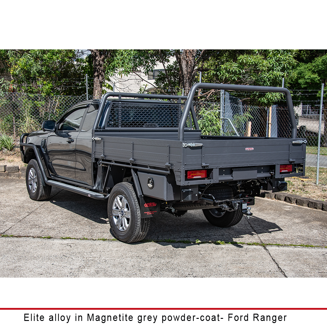A Heavy Duty stylish steel tray designed to be eye catching and able to withstand the harsh Australian conditions. Features Heavy duty fully welded steel tray Heavy duty 76mm headboard Laser cut mesh window protection Heavy duty dropsides and large over centre catches Tail...