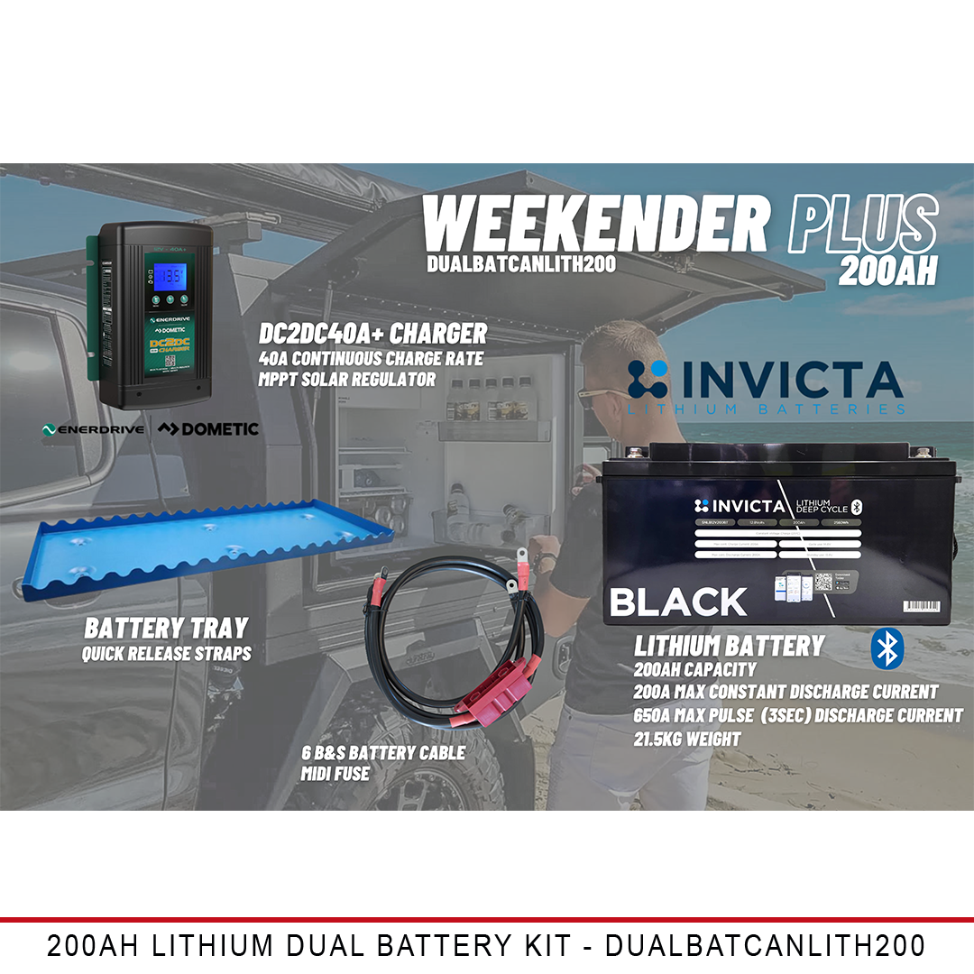 The Weekender PLUS is designed for the tradie who enjoys weekends away with the family. The 200AH Lithium battery provides plenty of power to charge cordless tools & run the 12v fridge to keep your lunch & drinks cold. The additional capacity & discharge rate allows the use of a 2000W inverter.